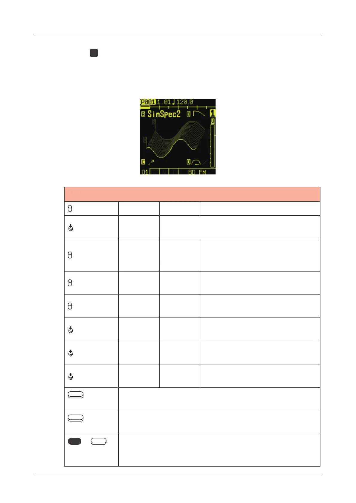 A knob Wave 1 - 64 Select a Wavetable.
