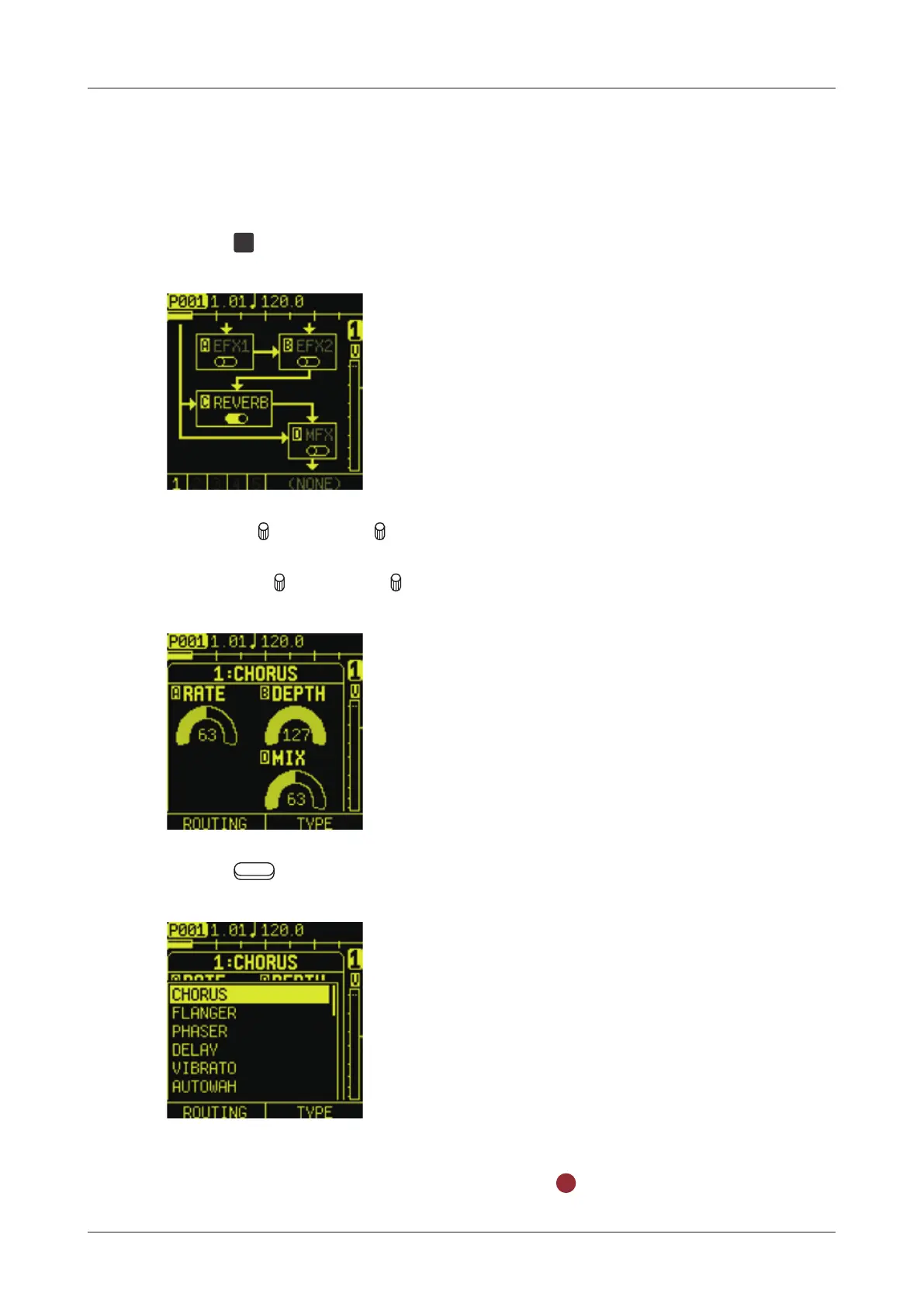 A knob or B knob to open the EFX1/EFX2 edit page.