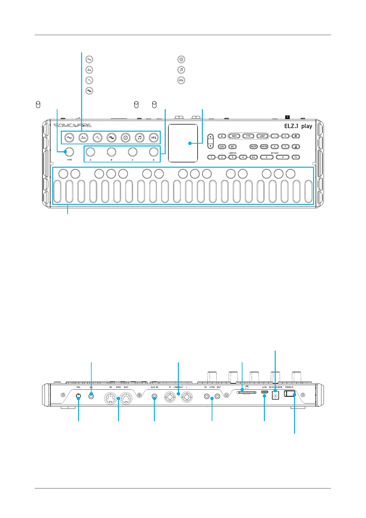 LOOPER1 ~ 4 button LOOPER ALL button OCTAVE UP/DOWN button