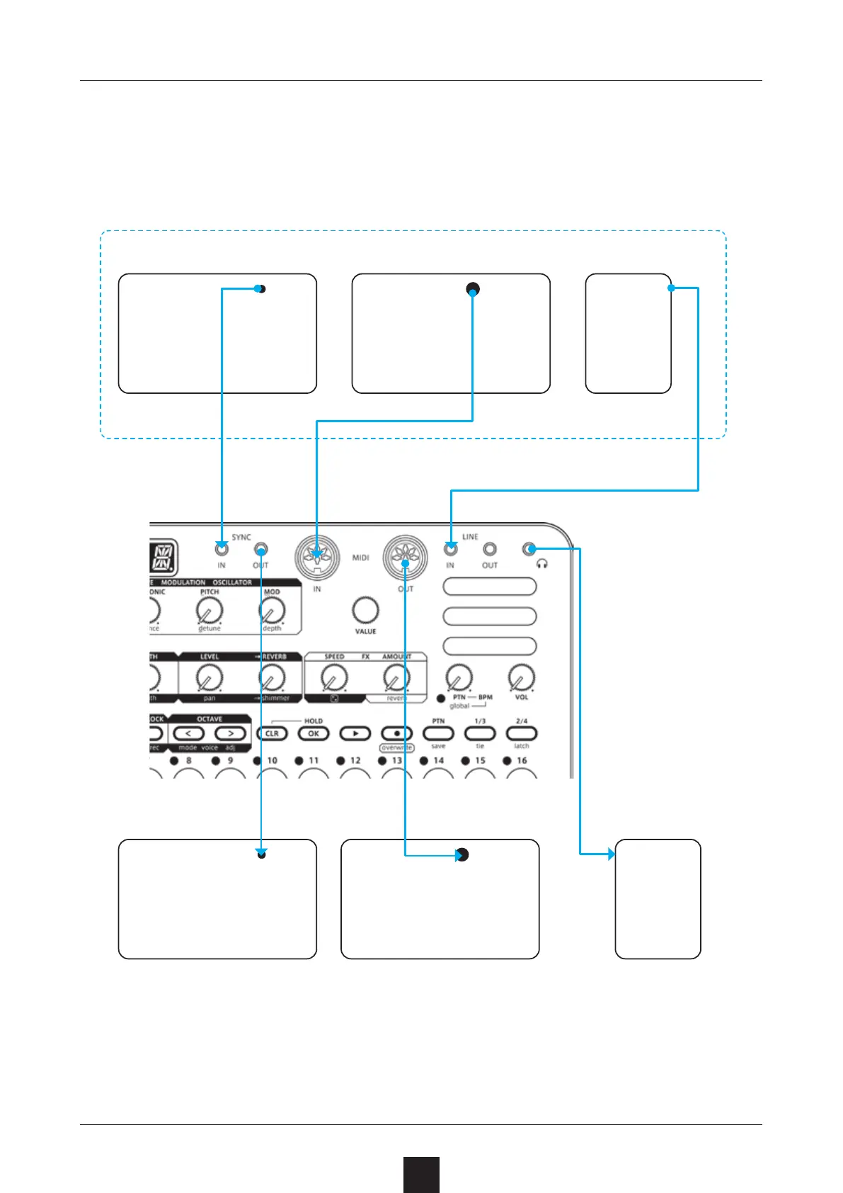 ferent connectors. For example, a Pocket Operator acting as a clock mas-