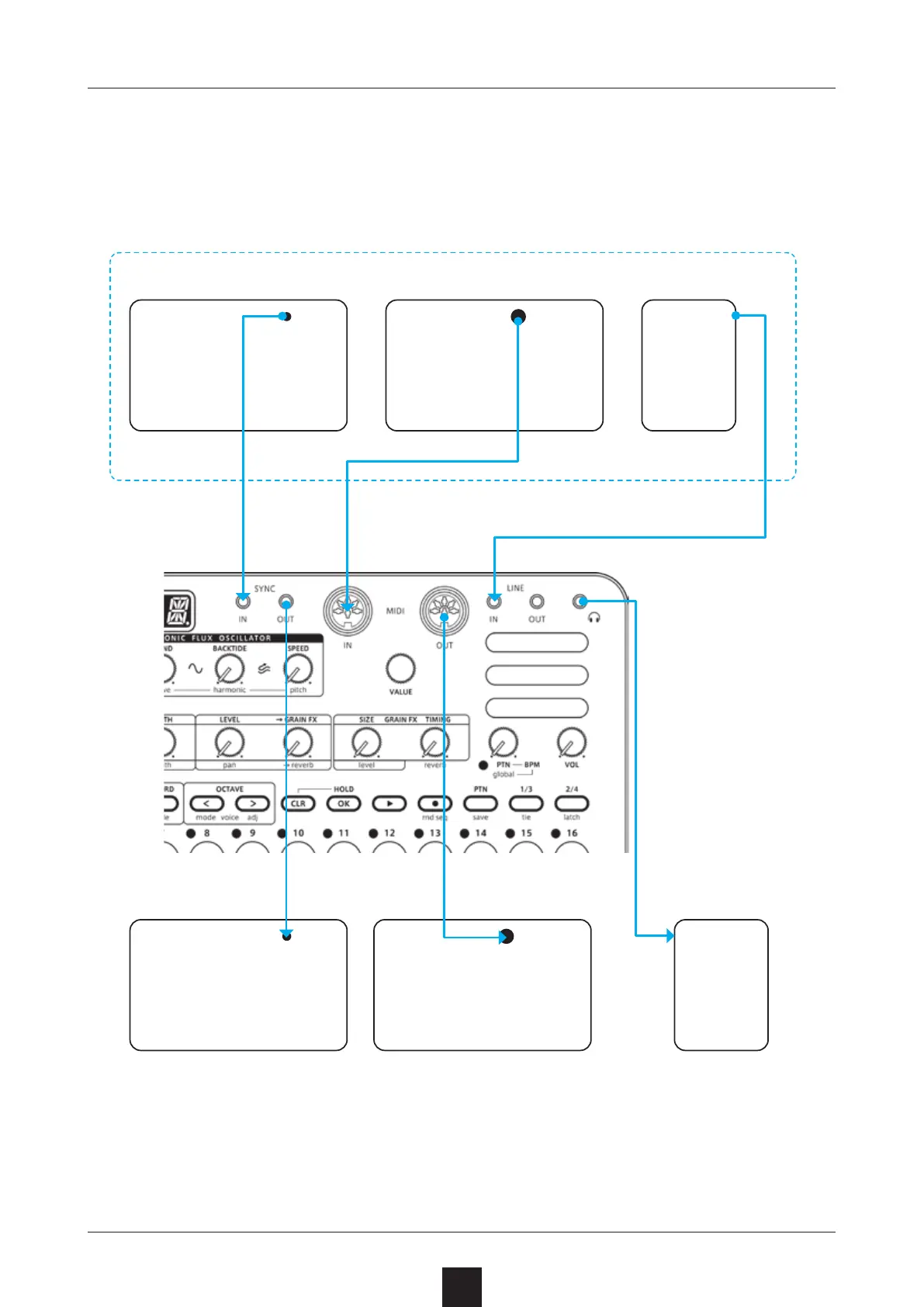 ferent connectors. For example, a Pocket Operator acting as a clock mas-
