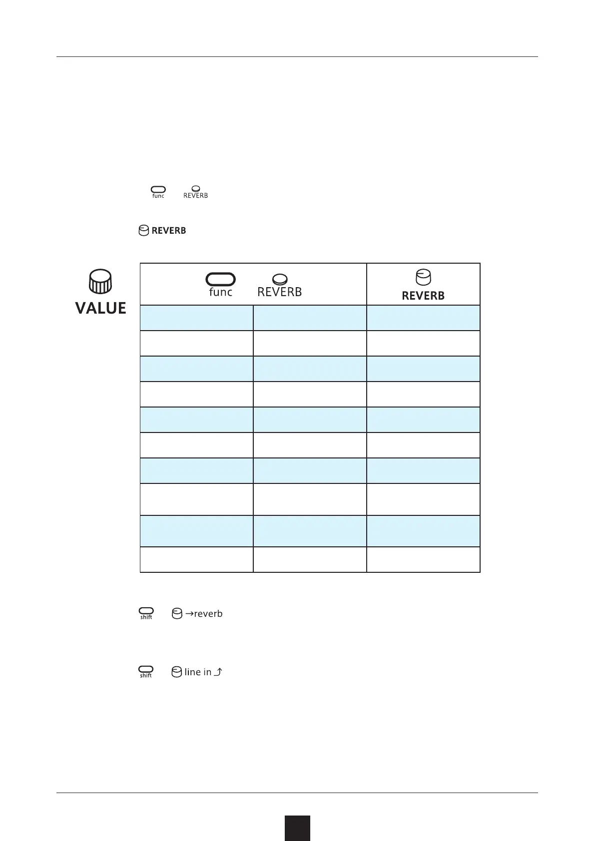 + to set the reverb send level for LINE IN input.