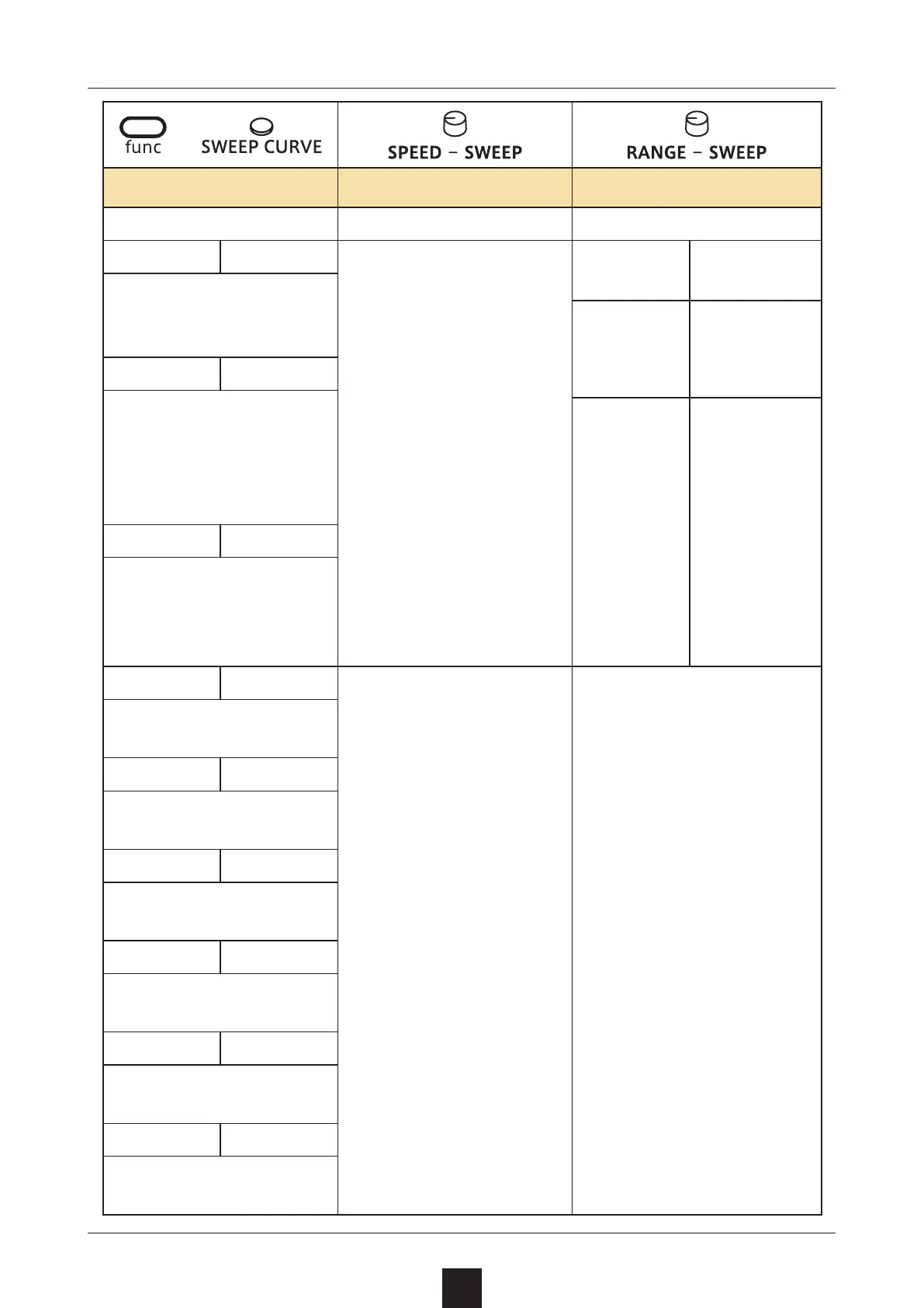 Curve type Sweep speed Sweep amount