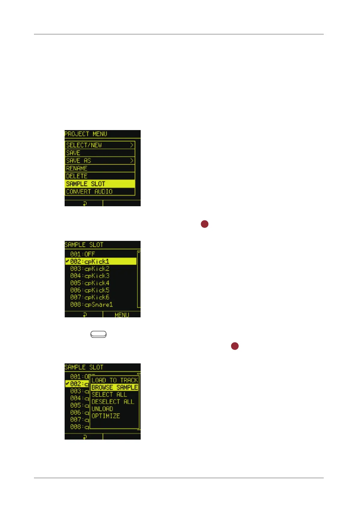 SAMPLE SLOT in the PROJECT MENU allows you to load a