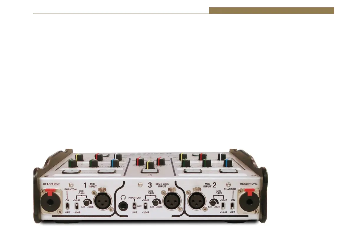 and headphone outputs as well as the microphone power and gain controls.