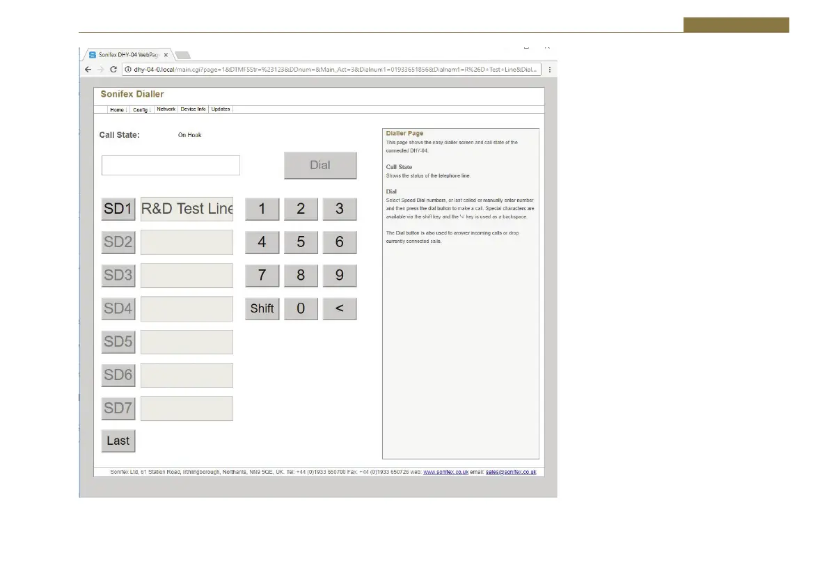 Figure 6-4: Dialler Page – simple screen for making calls – accessed via Home Menu drop-down.