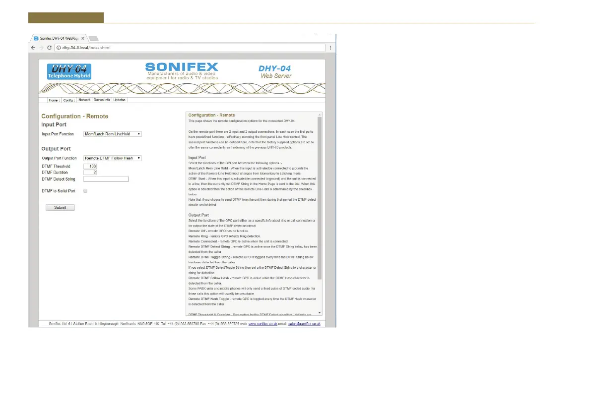 Figure 6-7: Remote Port Configuration – settings of remote port and DTMF detection – accessed via Config