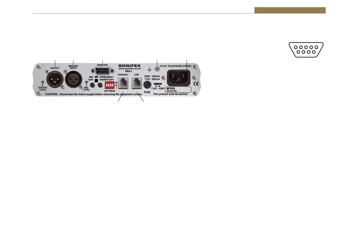 The remote connector is a 9-way female (socket) ‘D’ type. To remotely
