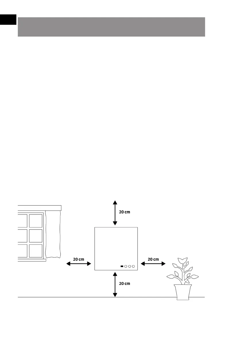 Das Heizgerät muss mindestens 20 cm von allen Gegenständen, Wän-