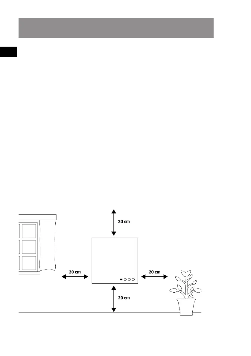 Het verwarmingstoestel moet minstens 20 cm verwijderd zijn van alle