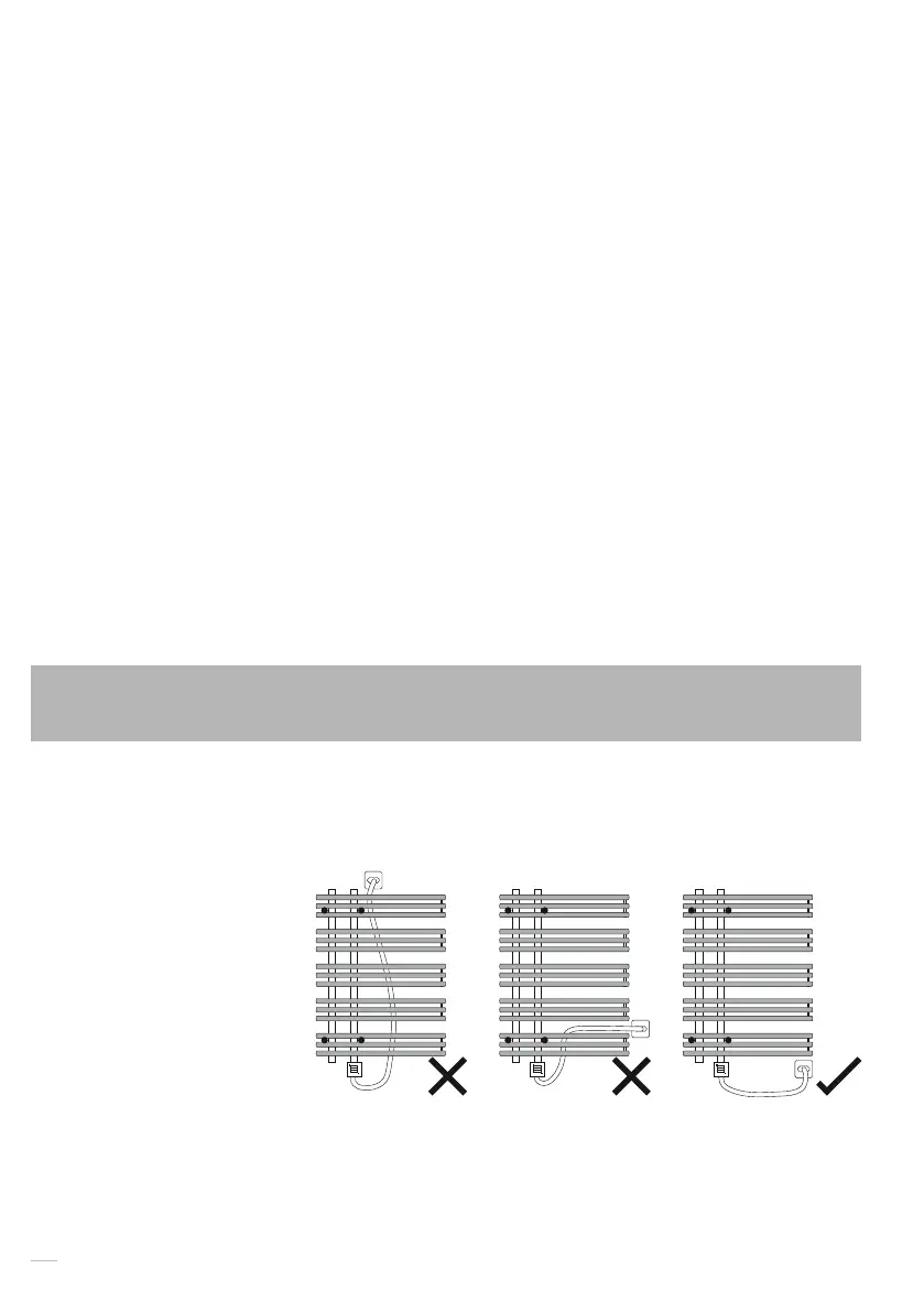 • Le radiateur ne doit pas être situé devant une prise de courant. Installez le radiateur suffisamment