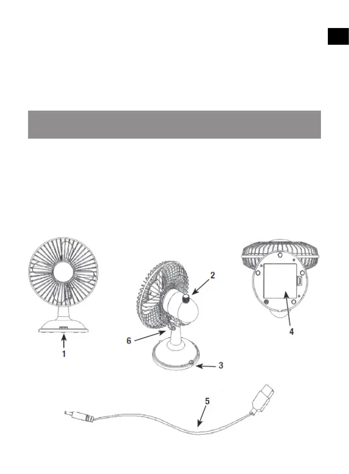 2. Knopf zum Einstellen der Drehbewegung des Ventilators