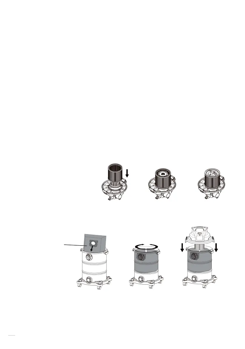 Durante l‘aspirazione di liquidi, il filtro a cartuccia deve essere posizionato sopra la gabbia del filtro. Quando si