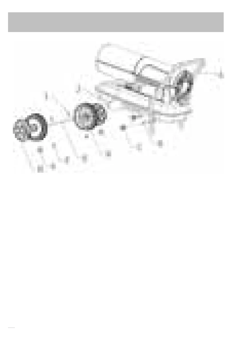 côtés de l‘arbre, faites glisser la roue (D) sur l‘arbre de roue (E), vissez l‘écrou (G) pour fixer la roue