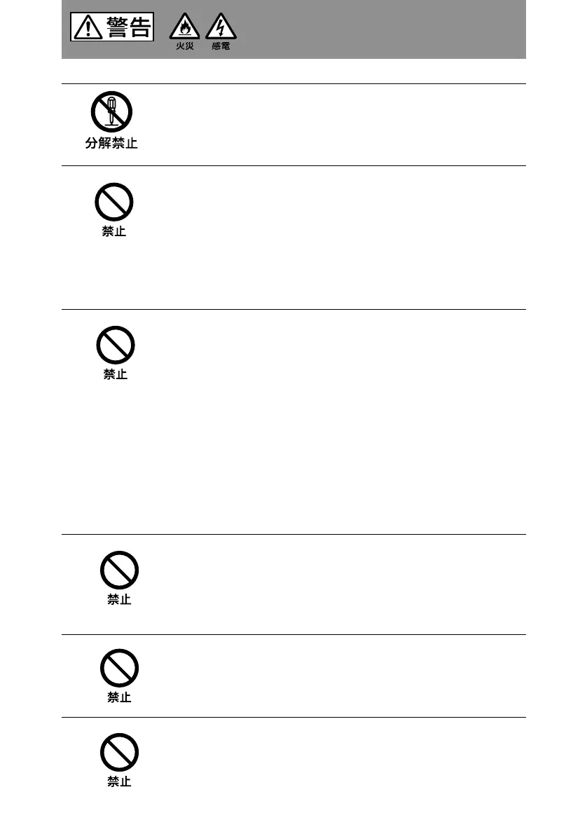 電源部を分解したり、改造したりすると、感電の原因となります。