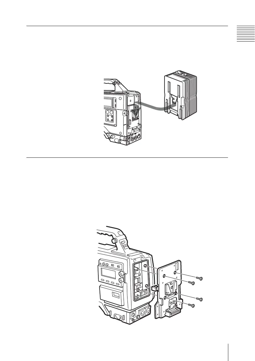 下図のように取り付けると、カムコーダーと本機のバッテリーコネ