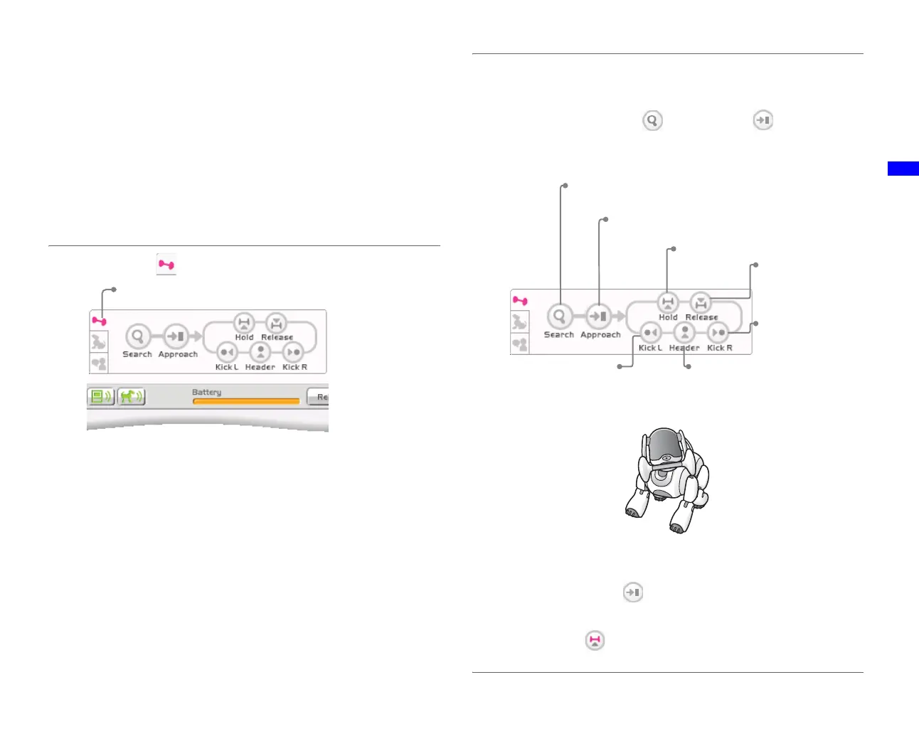 • Depending on the AIBO robot’s current action, different buttons