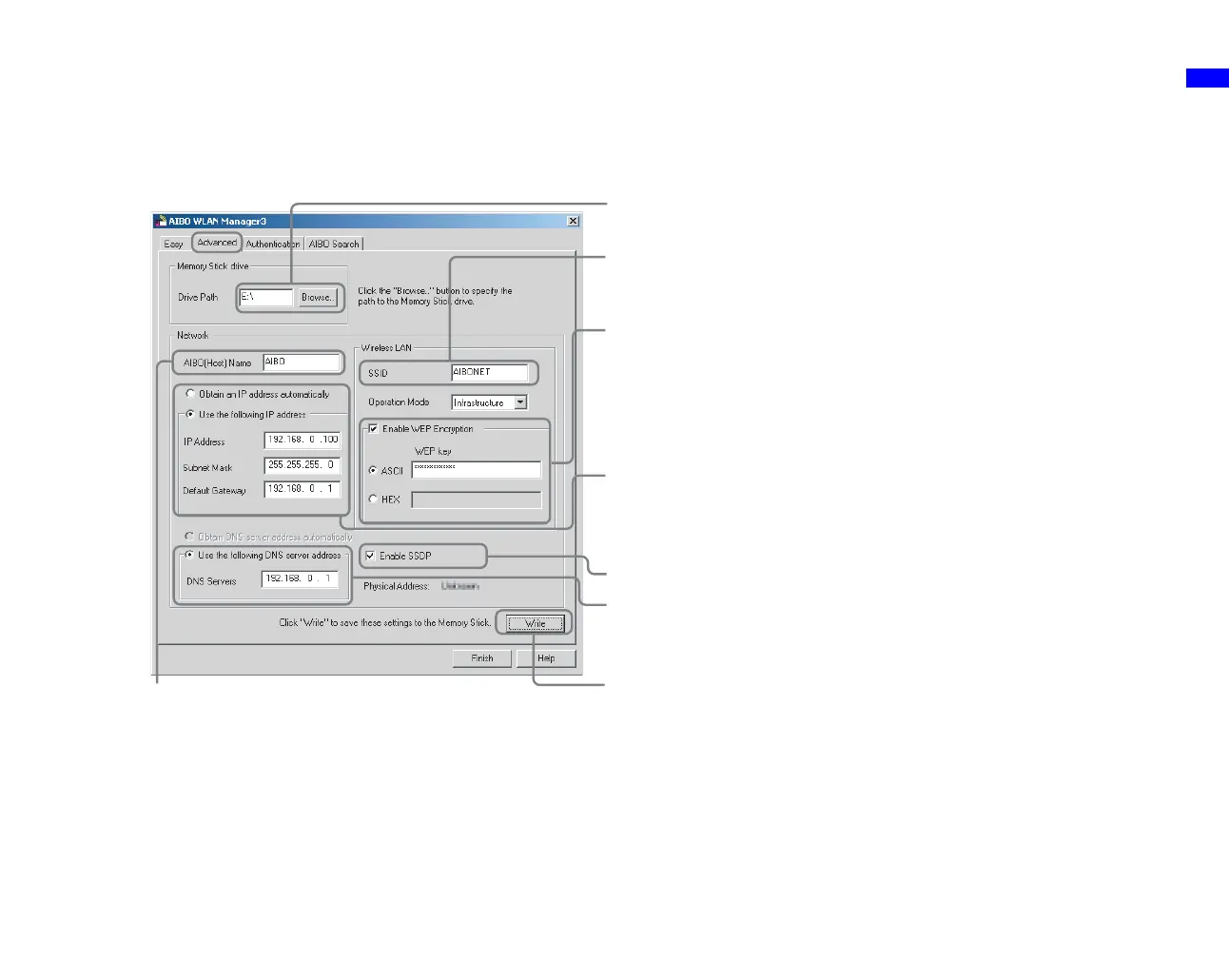 For additional settings, refer to “AIBO Entertainment Robot network settings” on page 59.