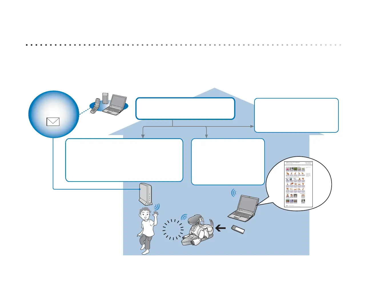 robot in the AIBO Photo Album, in real-time. You can also use your mobile communication device* (with Internet