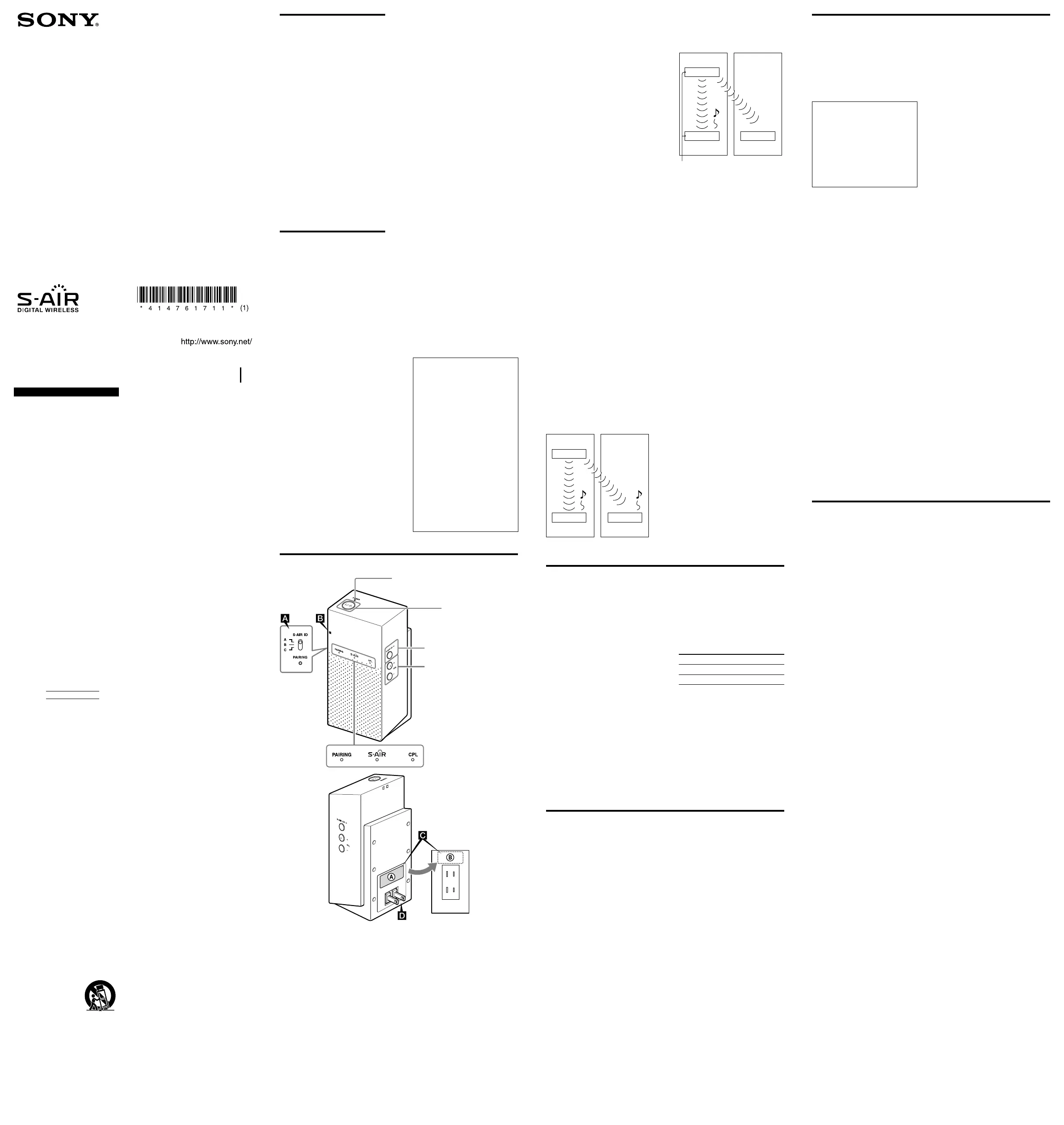 Bekijk gratis de handleiding van Sony AIR-SA5R, stel vragen en lees de antwoorden op veelvoorkomende problemen, of gebruik onze assistent om sneller informatie in de handleiding te vinden of uitleg te krijgen over specifieke functies.