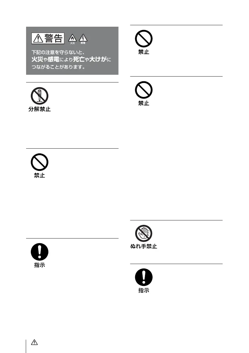 分解や改造をすると、火災