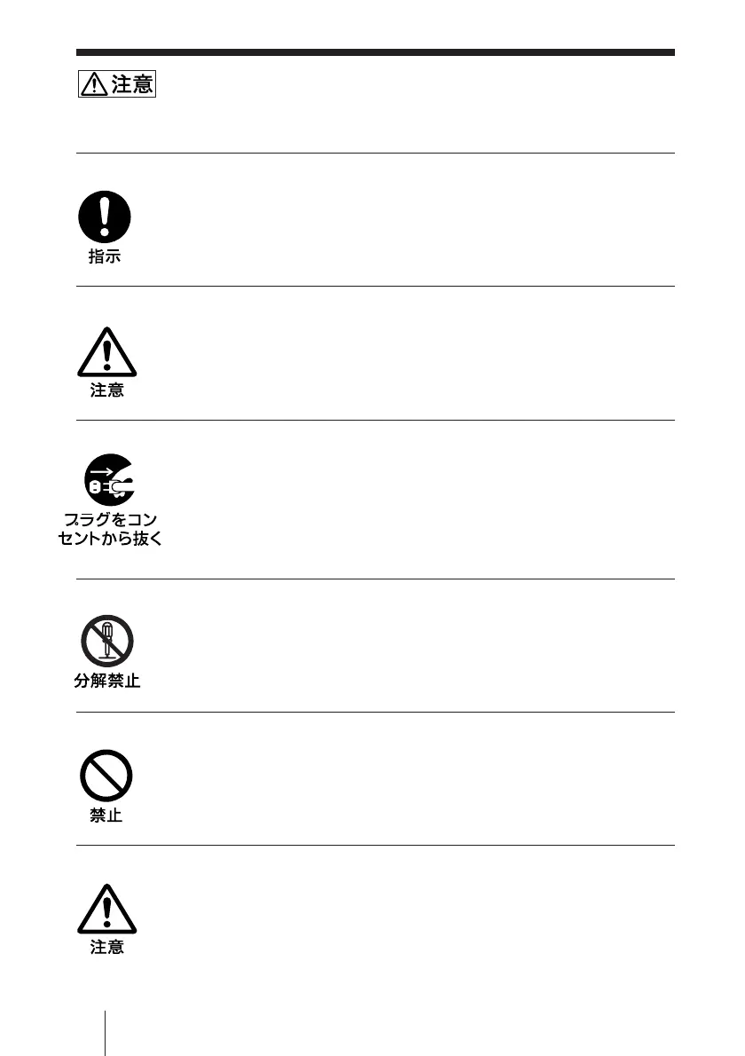 下記の注意を守らないと、けがをしたり周辺の物品に損害