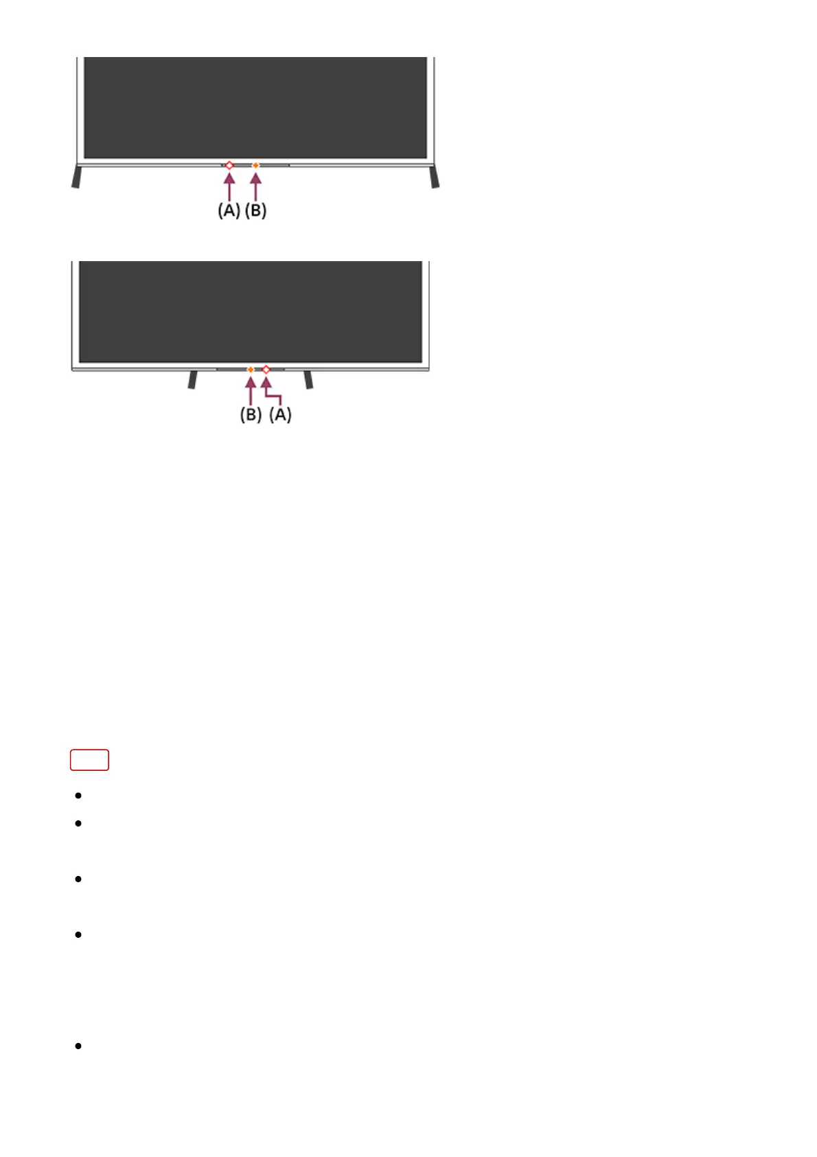 (B) The LED located at the bottom centre of the TV lights up amber when the TV is