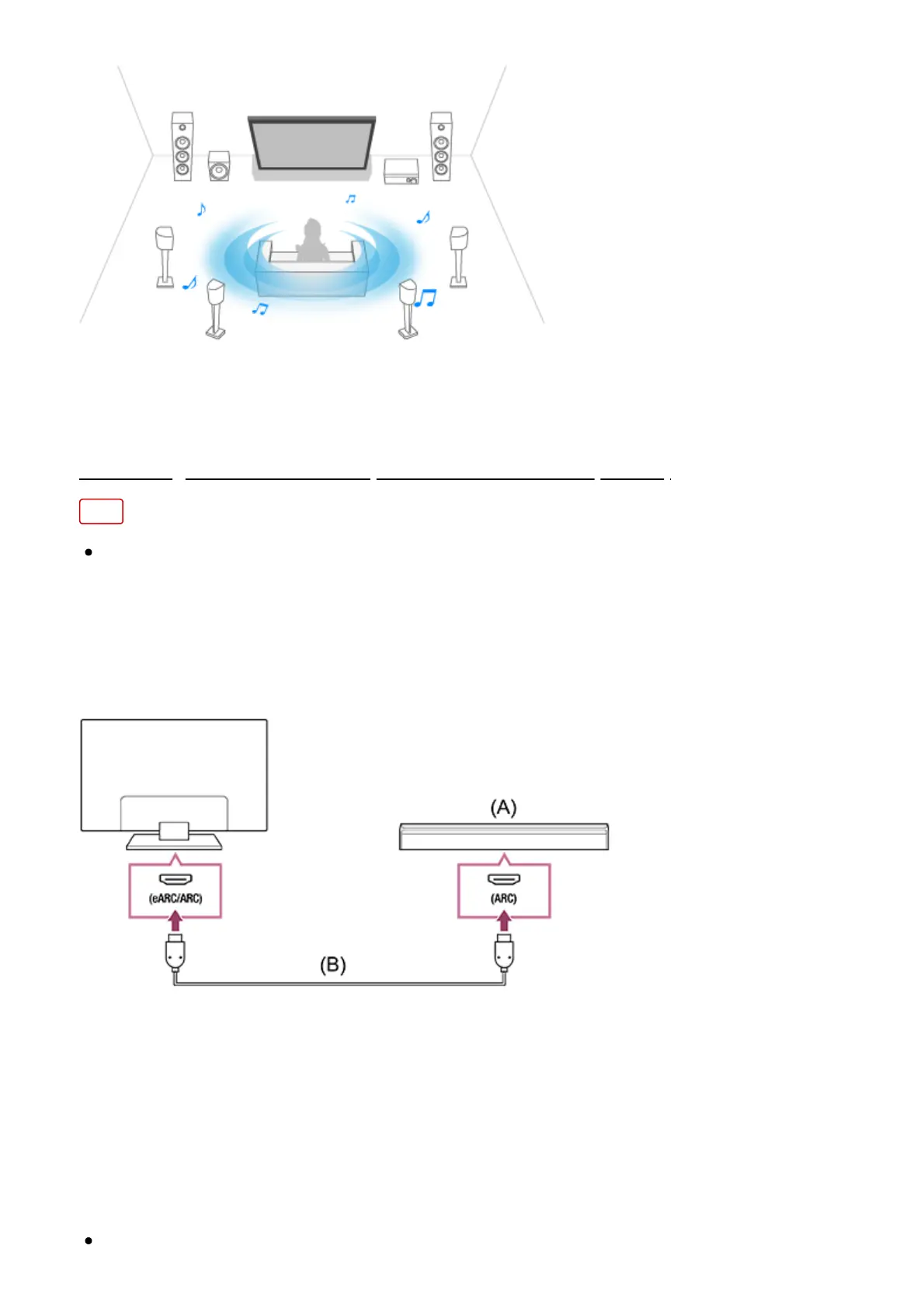sound bar's HDMI output terminal (eARC or ARC) with an HDMI cable.