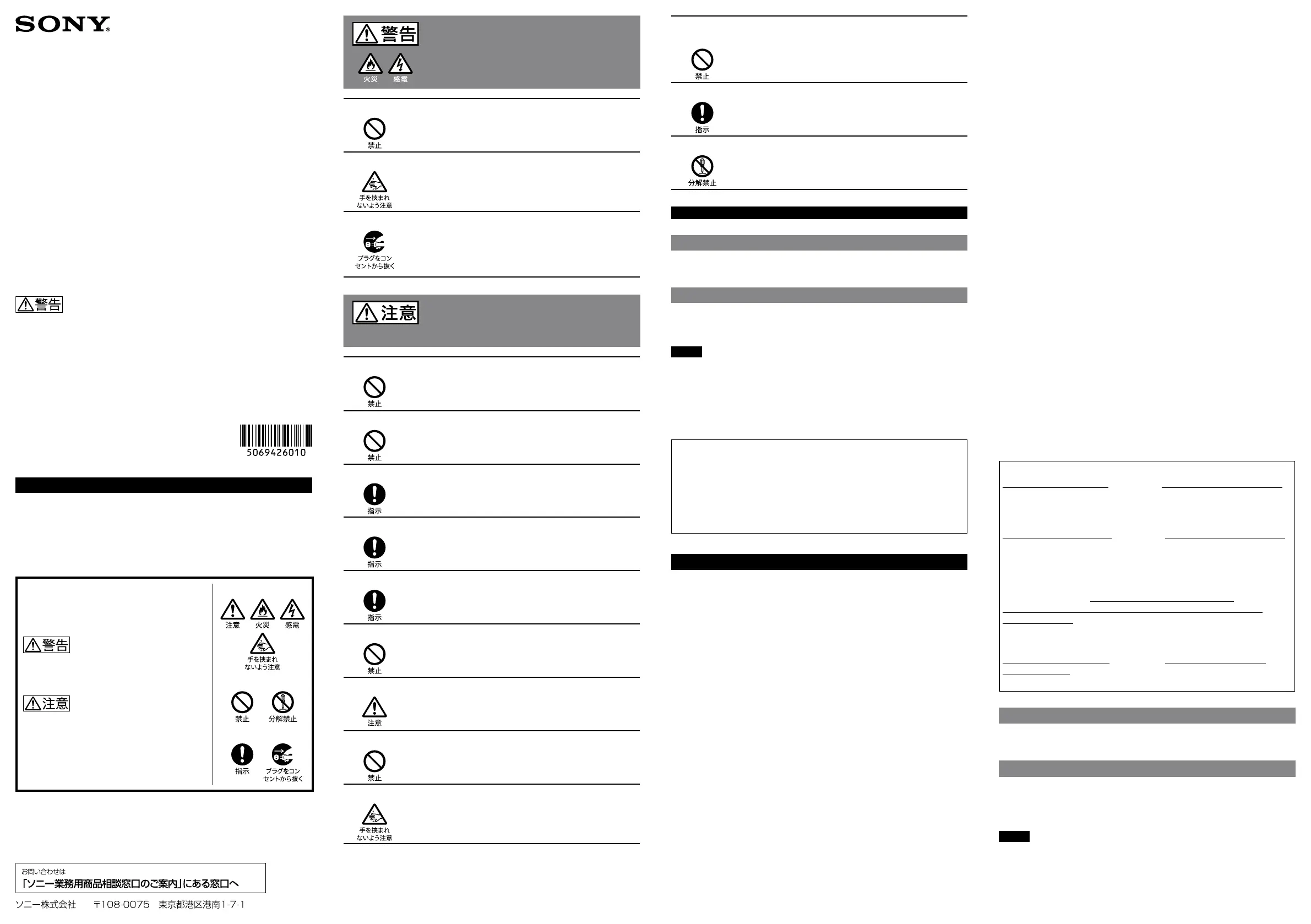 ソニー製品は安全に充分配慮して設計されています。しかし、電気製品は、まちがっ