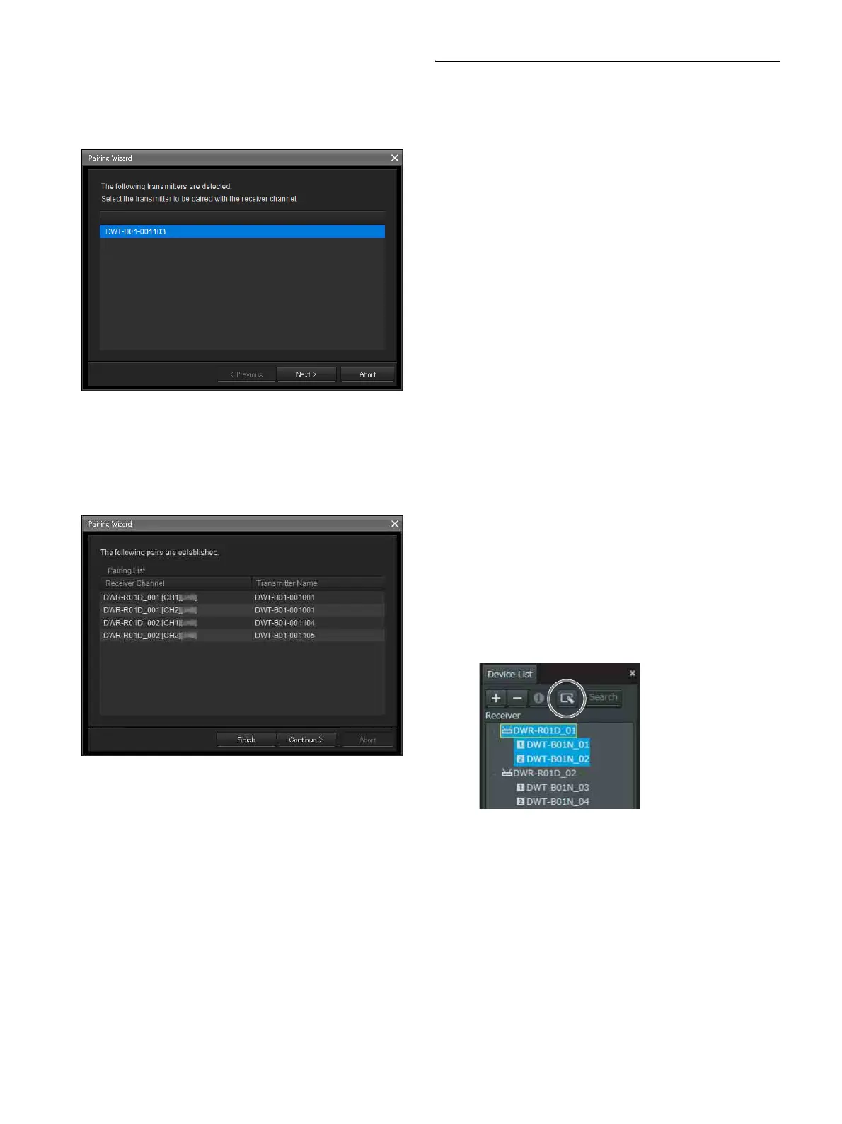 Select the transmitter for pairing, and click [Next >].
