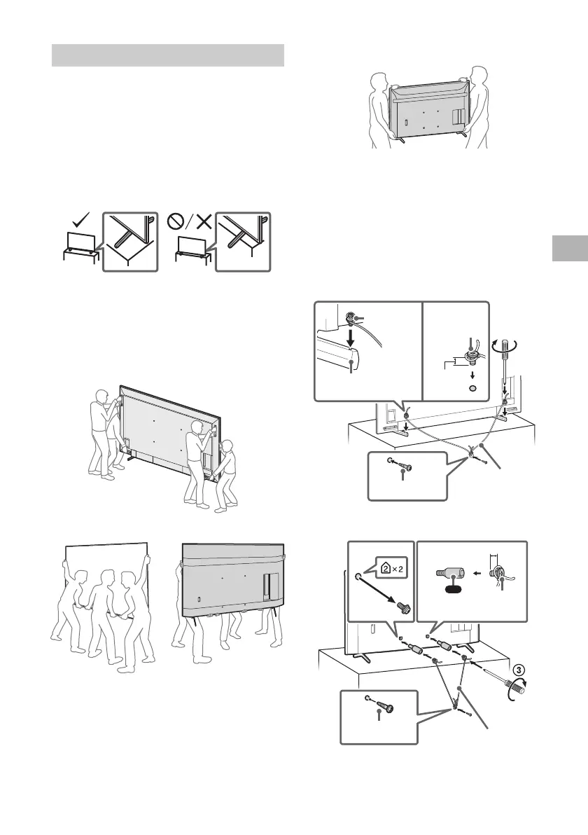 • 搬運大型 LCD 顯示器需要至少兩個人 (搬運 214.8 公分 (85 英