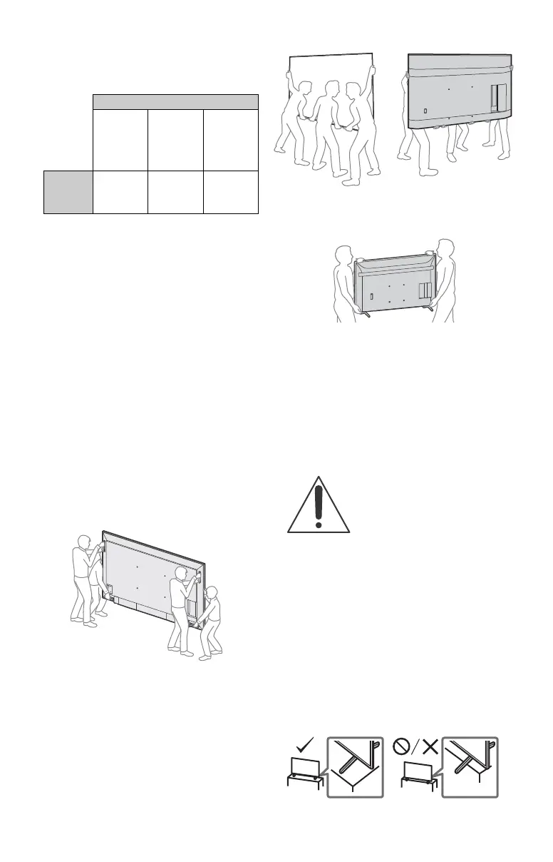• Lors du transport de l’écran LCD, le bon emplacement des