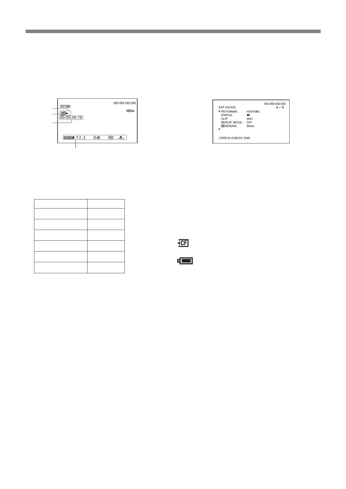 Displays the status (recording, playback etc.)