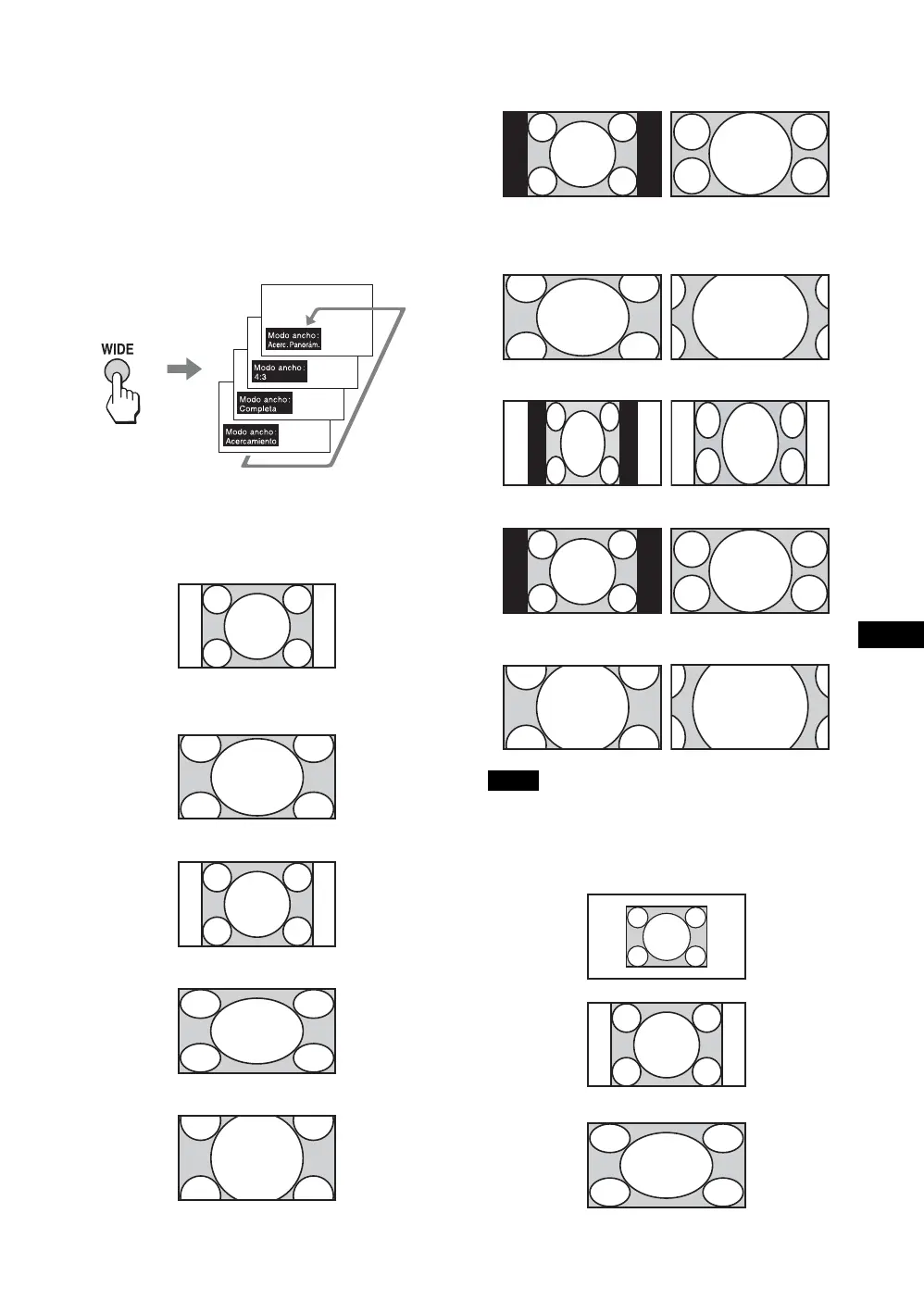 seleccionar “Acerc. Panorám.” ni “4:3”. Consulte la