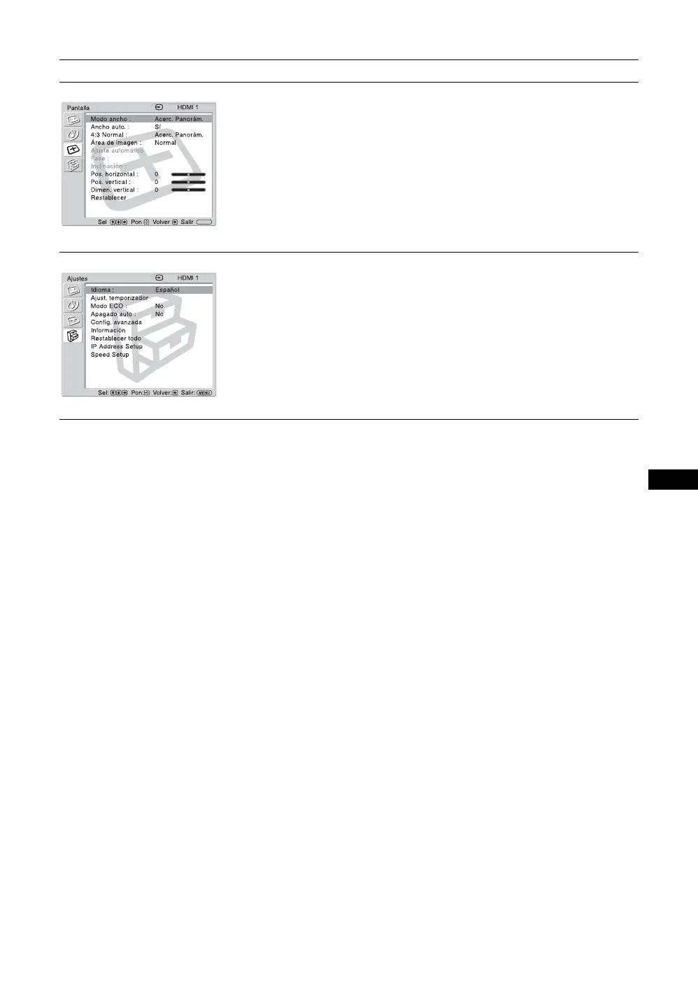 * En función de los ajustes realizados, es posible que los iconos del menú que se visualizan en la parte inferior de la pantalla no