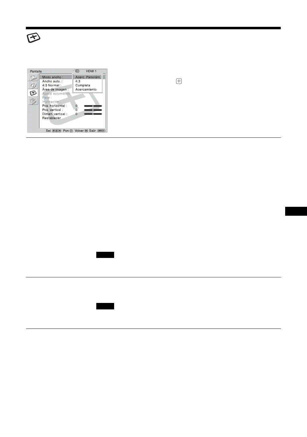 horizontal”, “Pos. vertical” y “Dimen. vertical” de la imagen. Consulte la página 22.