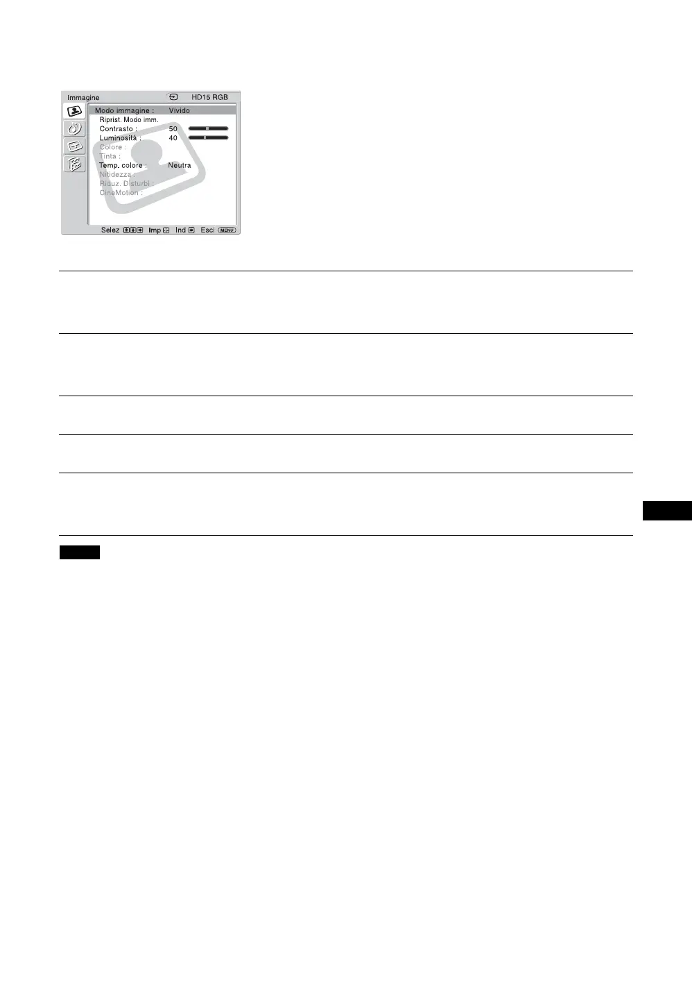 • Se non è in corso la trasmissione di un segnale, le opzioni del menu “Immagine” non sono disponibili.