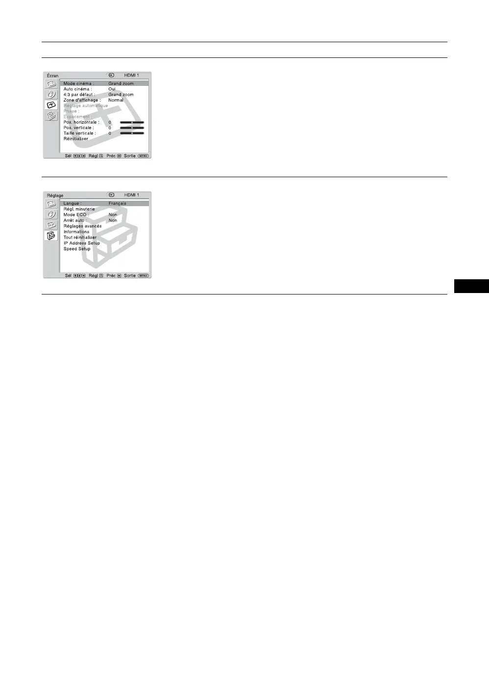 * Selon les réglages, il est possible que les icônes de menu affichées en bas de l’écran ne fonctionnent pas.