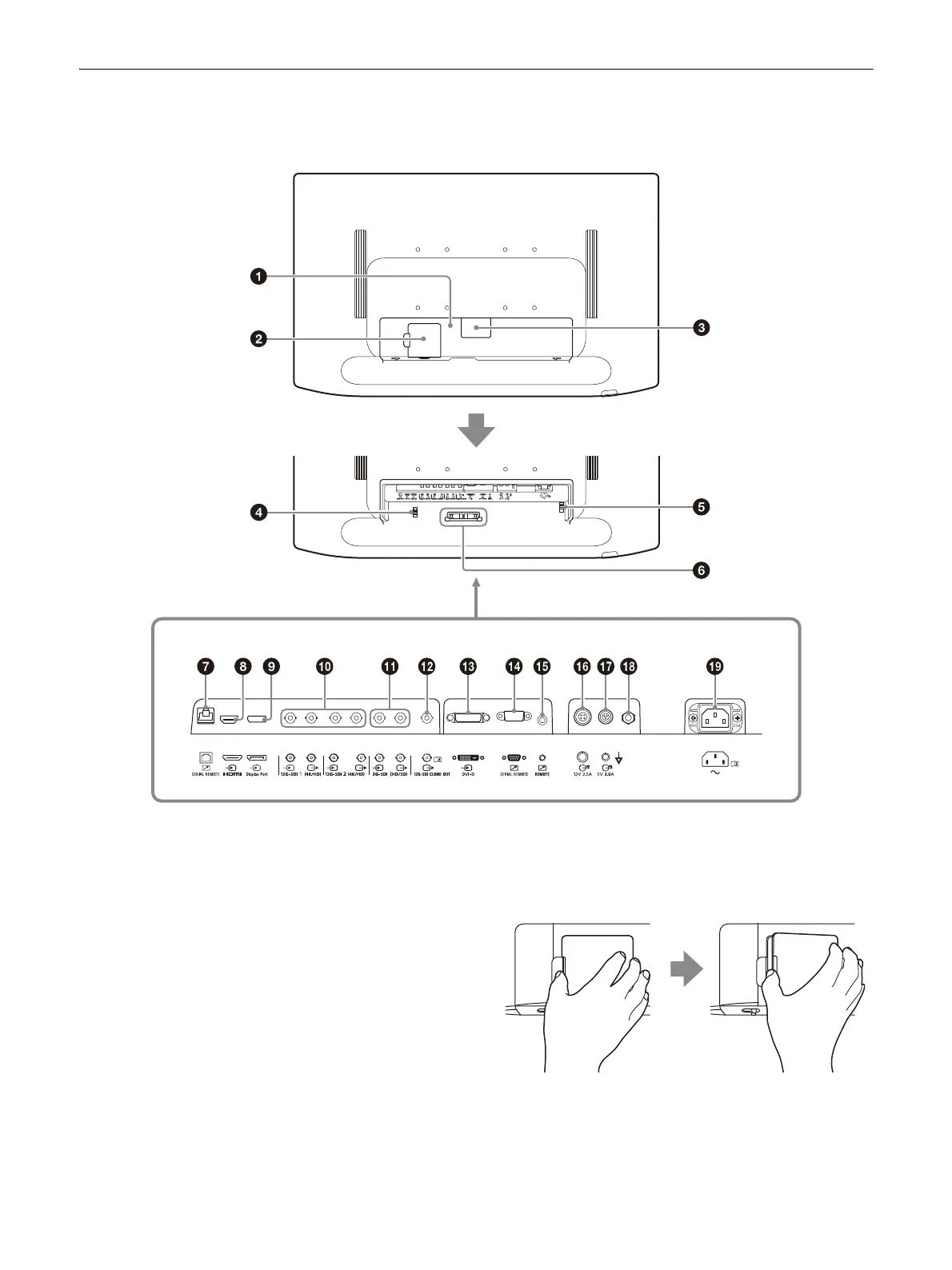 To use the connectors on the rear panel, remove the cable cover. For details on the cable cover, see