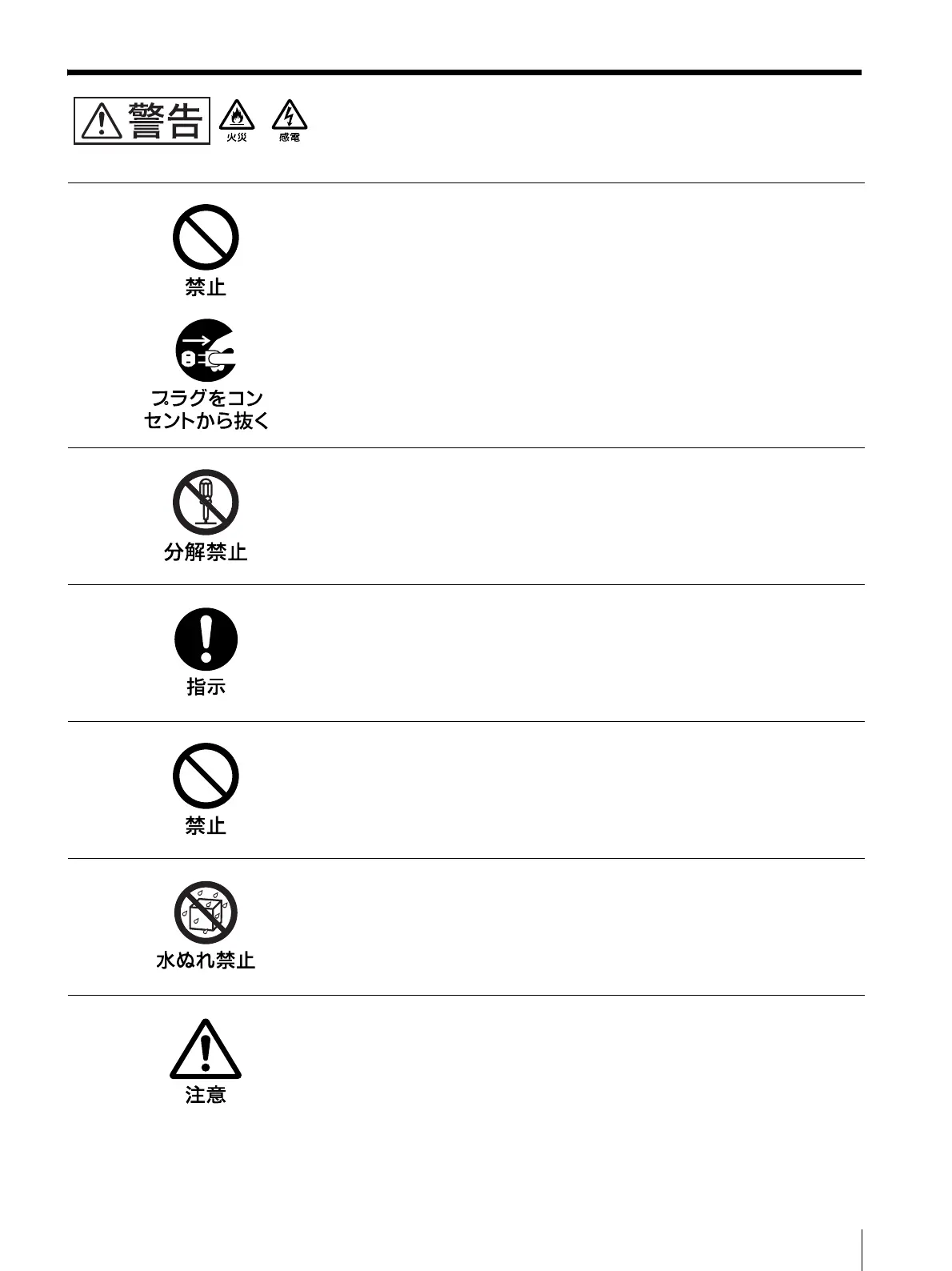 水が入ったり、ぬれたりすると、火災や感電の原因となることがあります。