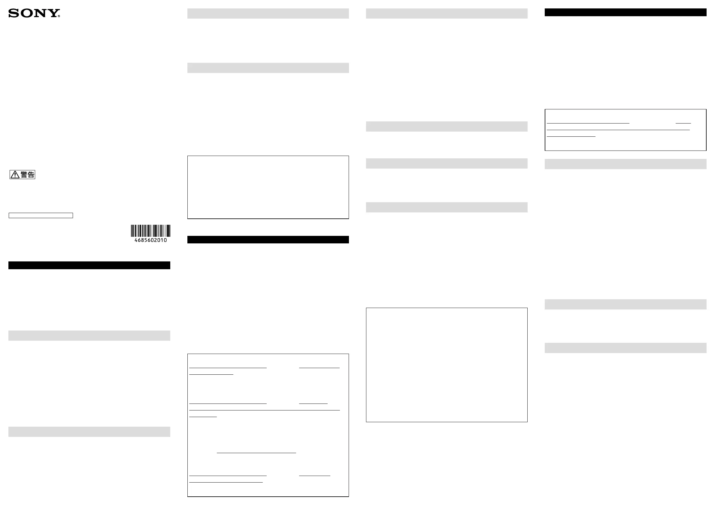 SONY LIMITED WARRANTY - Please visit http://www.sony.