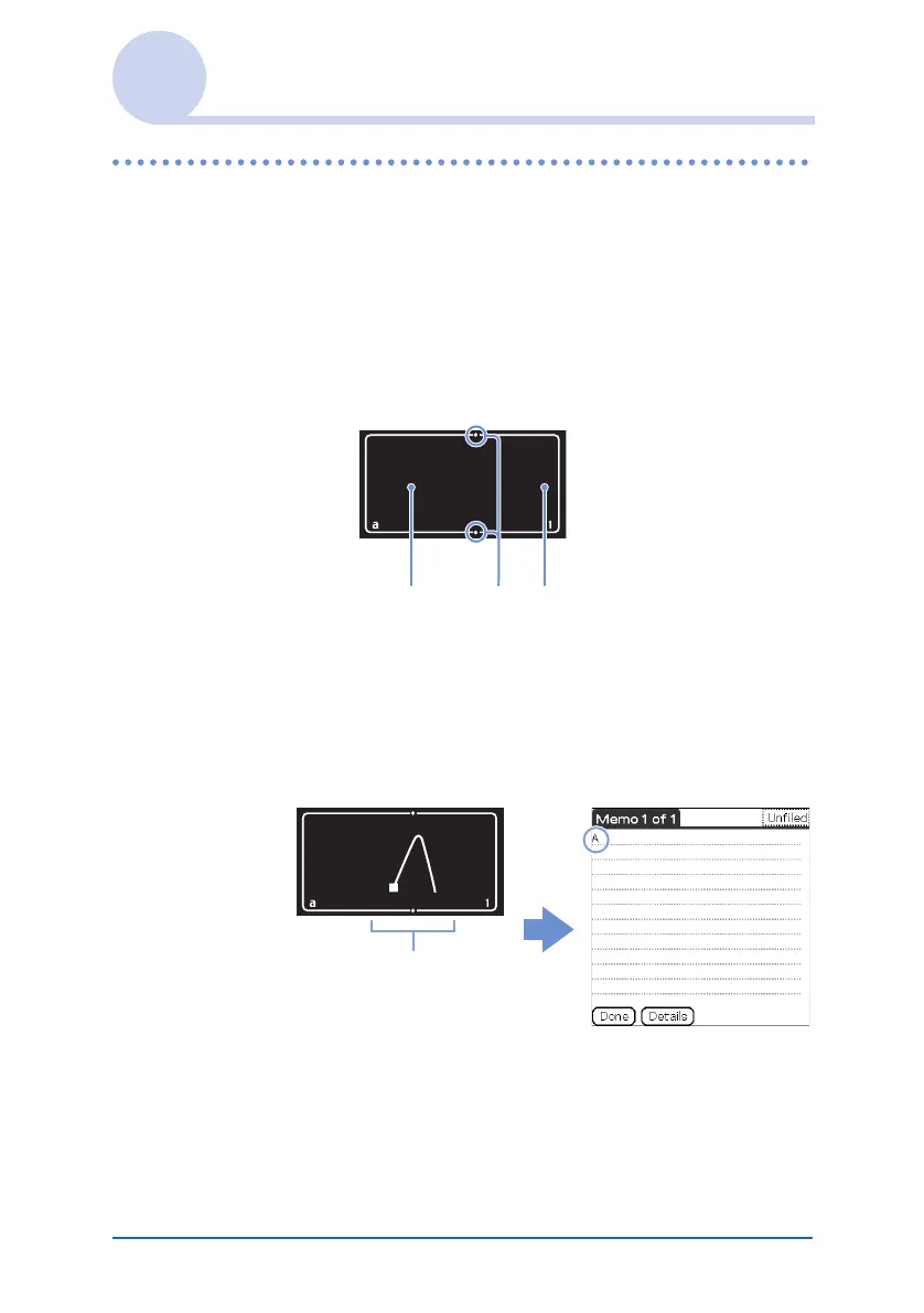To enter a lower case letter, write the stroke(s) on the Lower case