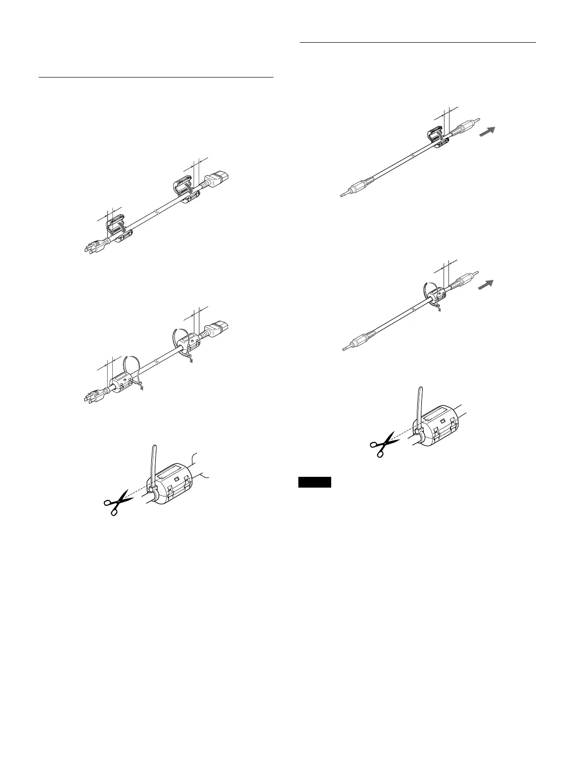 1 電源コードの両端にフェライトコアを取り付け、カチッと音がす