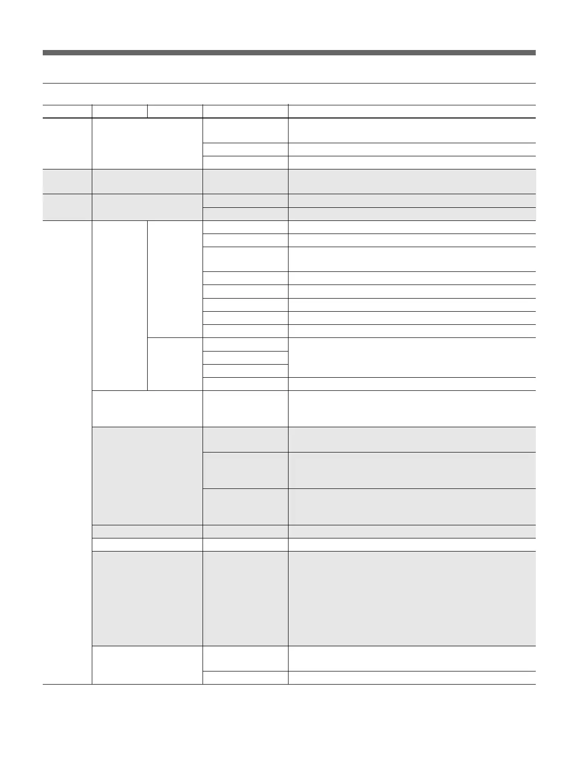 Menu 2ndary menu Submenu Control item Function
