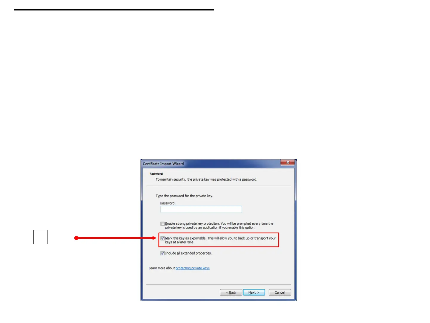 3. Check the [Mark this key as exportable] checkbox in the middle.