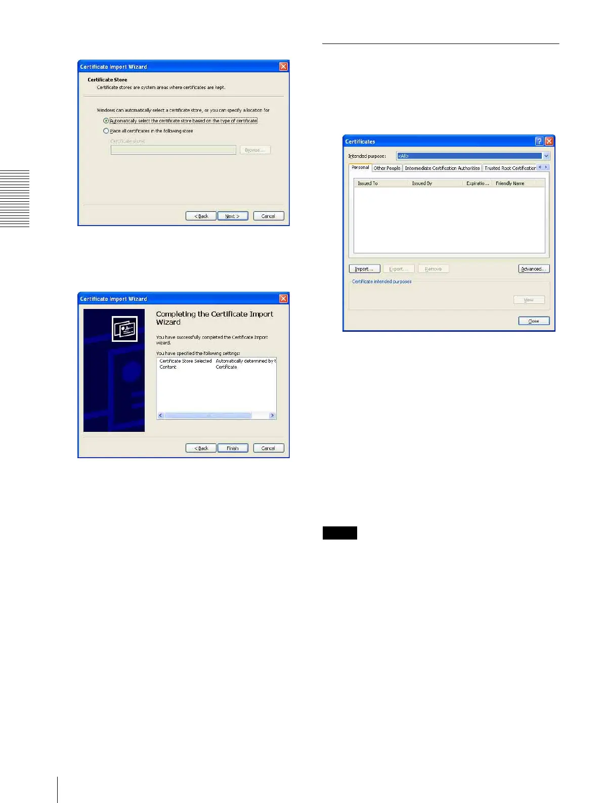 Select Automatically selects the certificate store