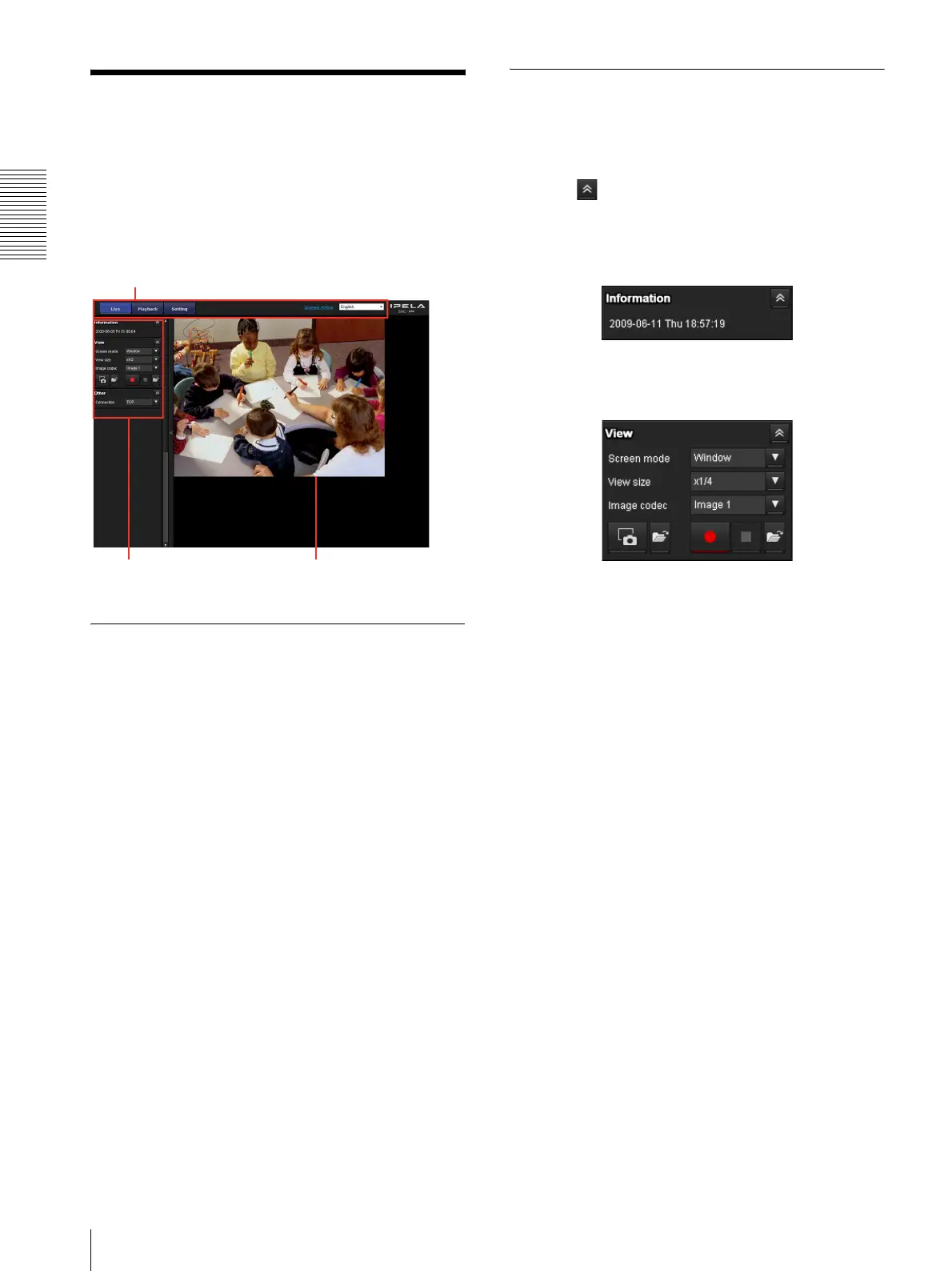 controls of the live viewer. For a detailed explanation on
