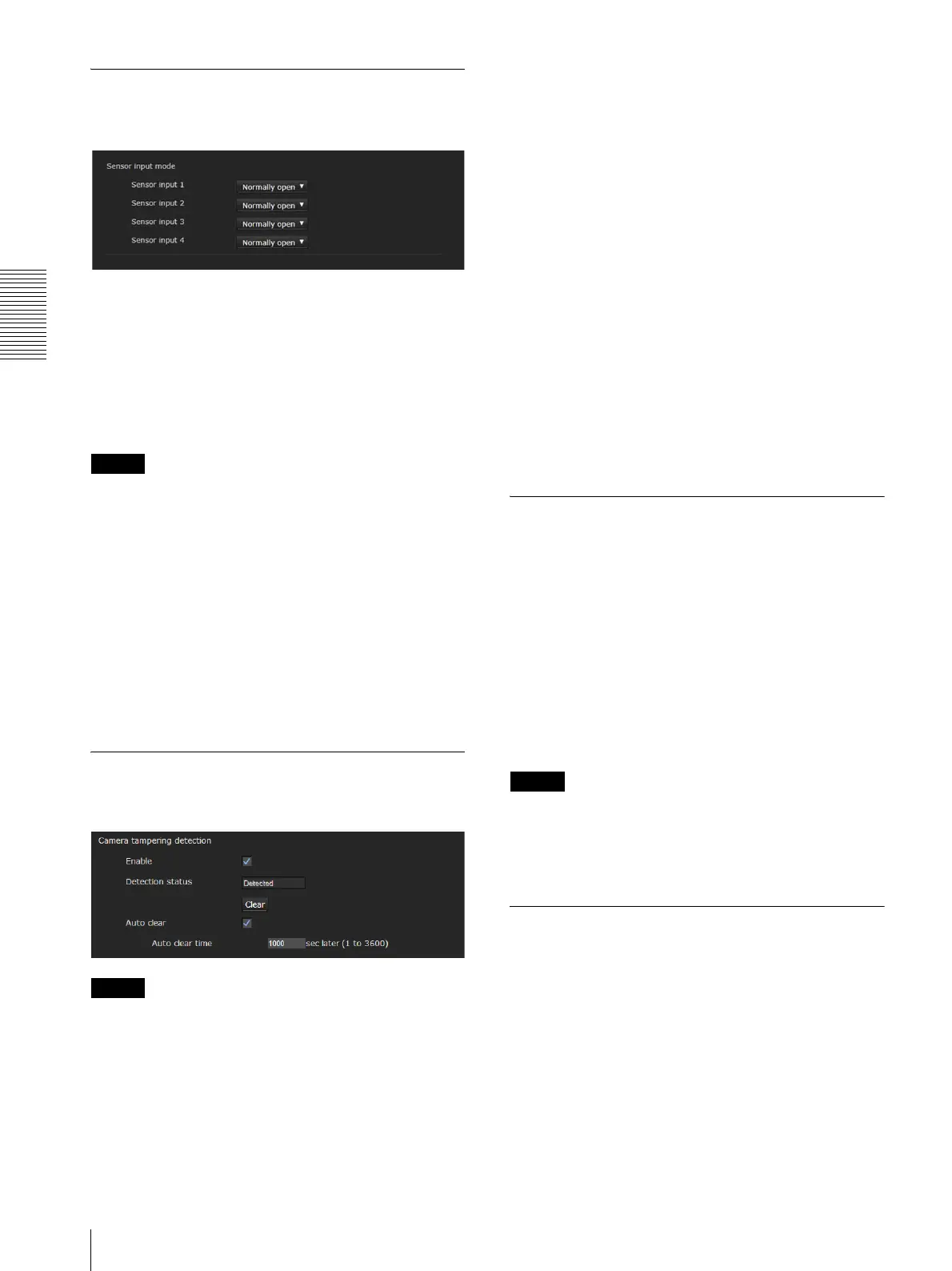 Setting the Sensor input/Camera tampering detection/Motion detection — Action input Menu
