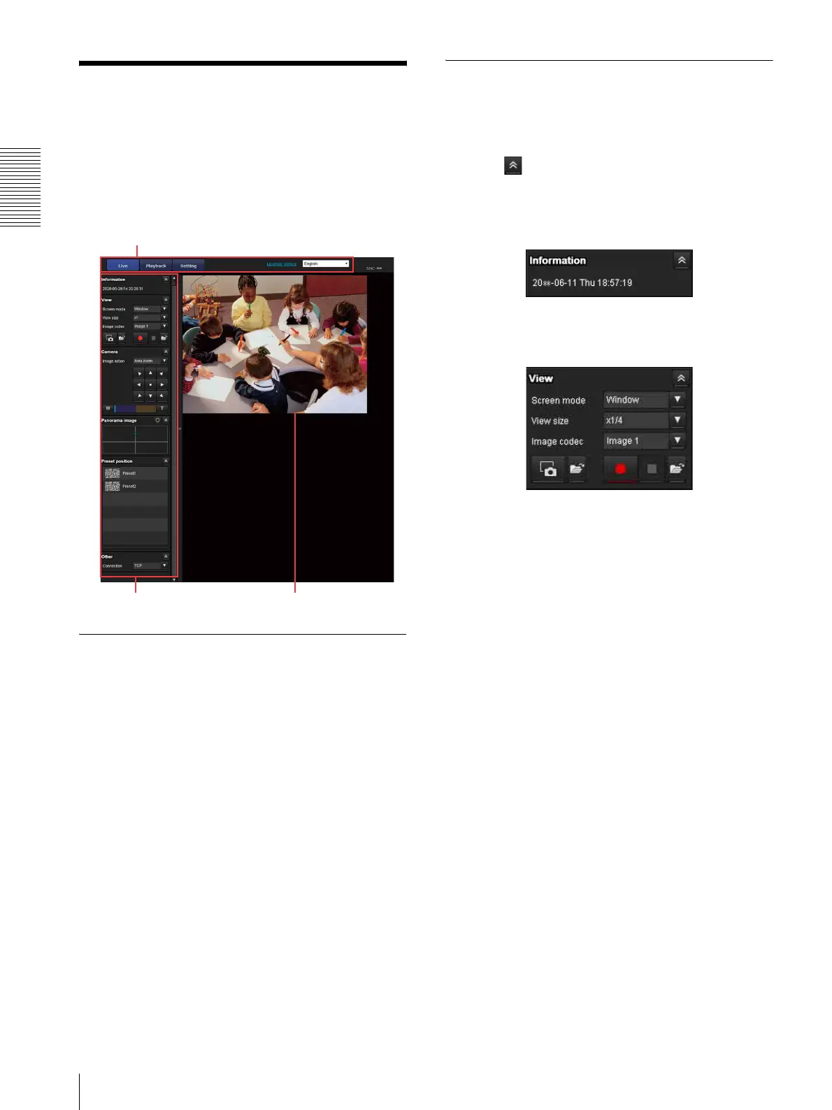 controls of the live viewer. For a detailed explanation on