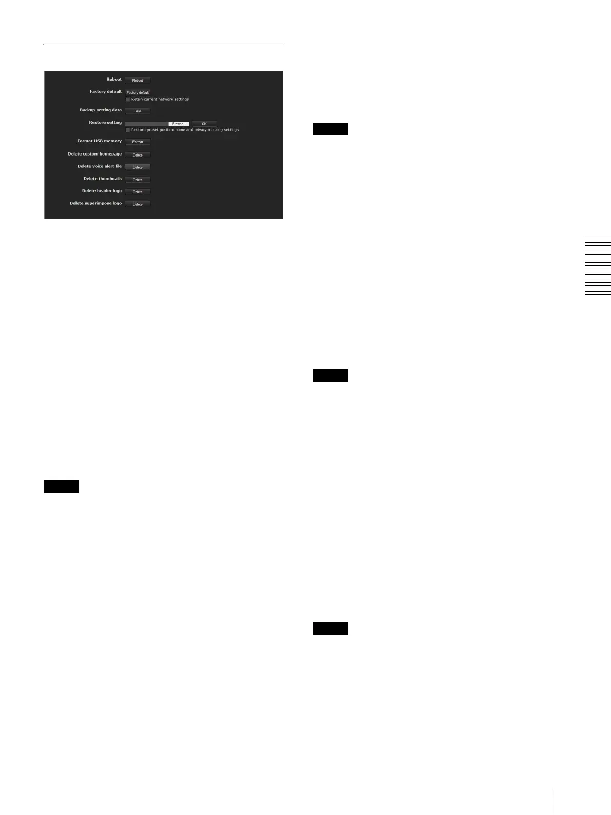 • With Restore setting, some items in the Network